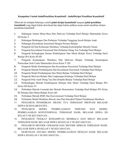 Judul Skripsi Kuantitatif Pgsd / Tips Memilih Judul Skripsi Yang Tepat Pada Masa Pandemi Covid 19 Youtube / We did not find results for: