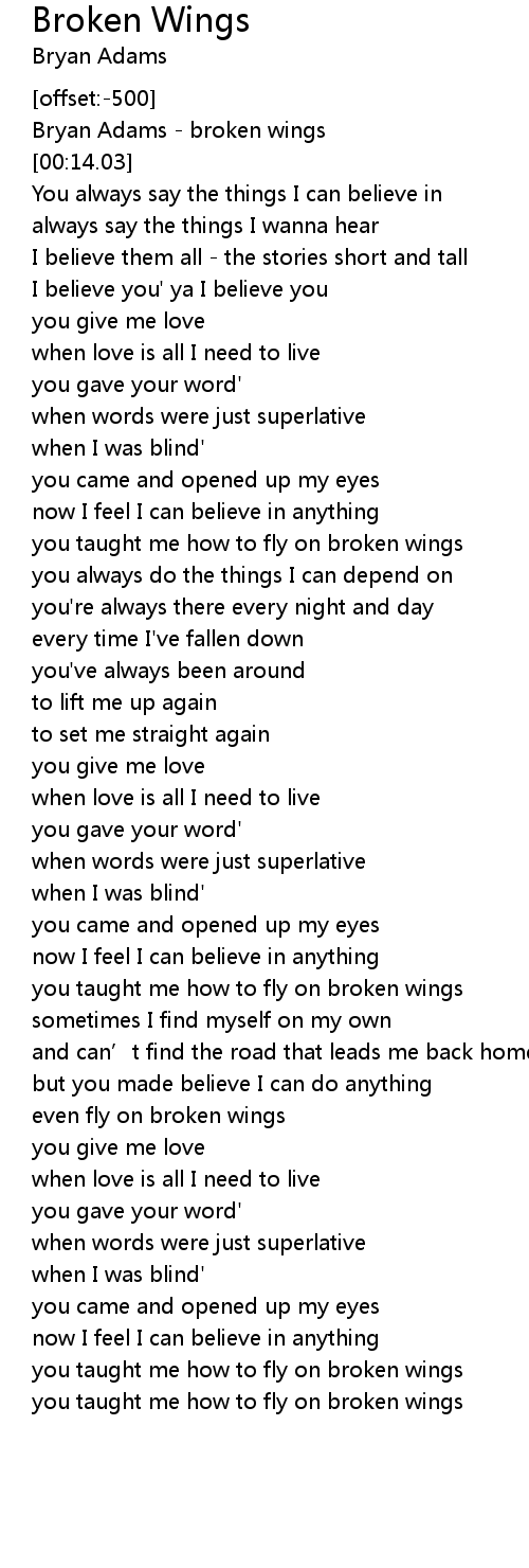 Lirik Broken Wings Dan Terjemahan / Lirik Lagu Cnblue Pdf Document - When the world is full of victims.. Berikut ini lirik lagu dan terjemahan bahasa indonesia 'blackbird' milik the beatles yang. Nahh uda pada liat ato denger lagunya ? Broken wings | alter bridge. I feel like stuttering saya merasa seperti gagap i just wanted to move saya hanya ingin pindah. Deven coleman (deven coleman) broken wings lyrics: